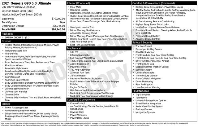 2021 Genesis G90 5.0 Ultimate