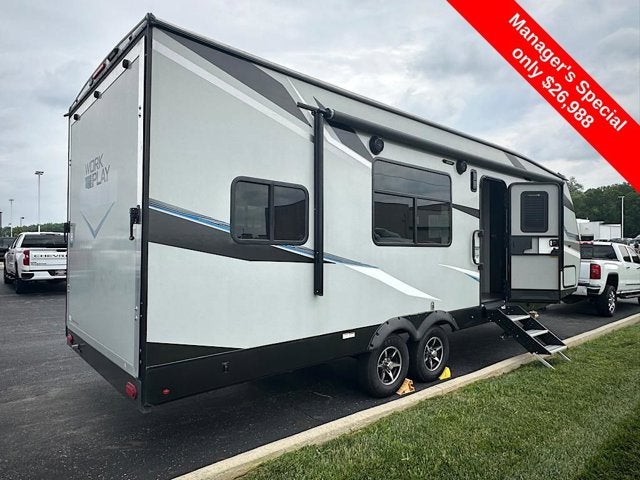 This 2022 Forest River Work & Play 27B Toy Hauler is available now at Coughlin of Chillicothe. Designed for adventure, the Work & Play 27B blends heavy-duty construction with home-like comfort, making it the perfect choice for RVers who want to bring their toys along for the journey. With ample garage space, a spacious living area, and Forest Rivers durable build quality, its ready for weekend trips or extended stays.