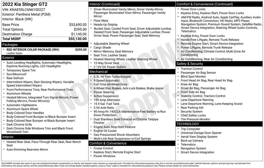 Certified. Panthera Metal 2022 Kia Stinger GT2