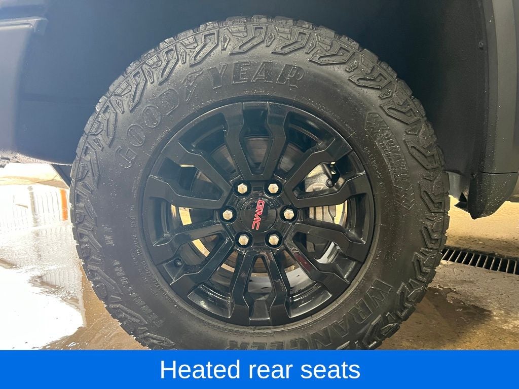 **LEATHER, **POWER MOONROOF, **REAR BACK-UP CAMERA, **NAVIGATION, **Bluetooth®, **REMOTE START, **HEATED AND COOLED LEATHER SEATING, **BLIND SPOT MONITORING, **APPLE CARPLAY/ANDROID AUTO, 10-Speed Automatic, 4WD, Obsidian Rush Leather, Apple CarPlay/Android Auto, Bed View Camera, Bose Premium Series w/12-Speaker System, HD Surround Vision, Heads-Up Display, Heated door mirrors, Heated front seats, Heated rear seats, Hitch Guidance w/Hitch View, Integrated Trailer Brake Controller, Lane Keep Assist w/Lane Departure Warning, MultiPro Audio System by Kicker (LPO), Navigation System, Off-Road Suspension, Power moonroof, Remote keyless entry, Remote Vehicle Starter System, Universal Home Remote, Ventilated Driver & Front Passenger Seats, Wheels: 18 x 8.5 Gloss Black Painted Aluminum, 12 Speakers, 120-Volt Bed Mounted Power Outlet, 120-Volt Instrument Panel Power Outlet, 16-Way Power Driver Seat Adjuster w/Lumbar, 16-Way Power Passenger Seat Adjuster w/Lumbar, 2 Charge/Data USB Ports Inside Center Console, 2 Type-C Charge-Only Rear USB Ports, 2 USB Ports, 3.23 Rear Axle Ratio, 4-Wheel Disc Brakes, ABS brakes, Air Conditioning, Alloy wheels, AM/FM radio, Auto High-beam Headlights, Auto-dimming door mirrors, Auto-dimming Rear-View mirror, Automatic Emergency Braking, Automatic temperature control, Brake assist, Buckle to Drive, Color-Keyed Carpeting Floor Covering, Compass, Deep-Tinted Glass, Delay-off headlights, Driver door bin, Driver Memory, Driver vanity mirror, Driver-Selectable Full-Locking Front Differential, Driver-Selectable Full-Locking Rear Differential, Dual front impact airbags, Dual front side impact airbags, Electric Rear-Window Defogger, Electrical Steering Column Lock, Electronic Stability Control, Emergency communication system: OnStar and GMC connected services capable, Floor-Mounted Center Console, Following Distance Indicator, Forward Collision Alert, Front anti-roll bar, Front Bucket Seats, Front Center Armrest, Front dual zone A/C, Front fog lights, Front Pedestrian Braking, Front Prem Floor Liners w/Removable Carpet Insert, Front Rainsensing Wipers, Front reading lights, Front wheel independent suspension, Full Grain Leather Seat Trim, Fully automatic headlights, Garage door transmitter, Genuine wood dashboard insert, Genuine wood door panel insert, Gloss Black Header w/Drk Nickel Grille Insert Bars, GMC Connected Access Capable, Heated 2nd Row Outboard Seats, Heated Driver & Front Outboard Passenger Seating, Heated steering wheel, Heavy-Duty Air Filter, Hill Descent Control, Hitch Guidance, Illuminated entry, In-Vehicle Trailering App, IntelliBeam Automatic High Beam On/Off, Keyless Open & Start, LED Cargo Area Lighting, Low tire pressure warning, Memory seat, Multicolor 15 Diagonal Head-Up Display, Not Equipped w/Steering Column Lock, Occupant sensing airbag, OnStar & GMC Connected Services Capable, Outside temperature display, Overhead airbag, Overhead console, Panic alarm, Passenger door bin, Passenger vanity mirror, Perimeter Lighting, Power Door Locks, Power door mirrors, Power driver seat, Power Front Passenger Windows w/Express Up/Down, Power Front Windows w/Driver Express Up/Down, Power passenger seat, Power Rake & Telescoping Steering Column, Power Rear Windows w/Express Down, Power Sliding Rear Window w/Rear Defogger, Power steering, Power Sunroof, Power windows, Preferred Equipment Group 4SG, Premium audio system: GMC Infotainment System, Push Button Start, Radio data system, Radio: Premium GMC Infotainment Audio System, Rain sensing wipers, Rear Cross Traffic Braking, Rear Pedestrian Detection, Rear Prem Floor Liners w/Removable Carpet Insert, Rear reading lights, Rear seat center armrest, Rear step bumper, Rear Wheelhouse Liners, Rear window defroster, Safety Alert Seat, Security system, SiriusXM w/360L, Speed control, Speed-sensing steering, Split folding rear seat, Spray-On Pickup Bed Liner w/AT4