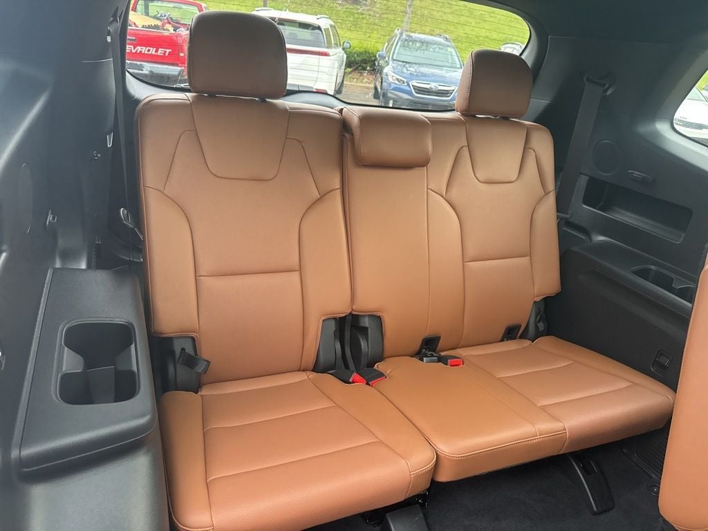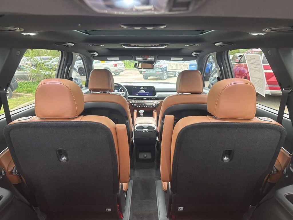Equipped with Terracotta Interior Color Package, 10 Speakers, 3.648 Axle Ratio, 3rd row seats: split-bench, 4-Wheel Disc Brakes, ABS brakes, Air Conditioning, Alloy wheels, AM/FM radio: SiriusXM, Apple CarPlay & Android Auto, Auto High-beam Headlights, Auto-dimming Rear-View mirror, Auto-leveling suspension, Automatic temperature control, Brake assist, Bumpers: body-color, Carpet Floor Mats, Compass, Delay-off headlights, Driver door bin, Driver vanity mirror, Dual front impact airbags, Dual front side impact airbags, Electronic Stability Control, Emergency communication system: 911 Connect, Exterior Parking Camera Rear, Four wheel independent suspension, Front anti-roll bar, Front Bucket Seats, Front Center Armrest, Front dual zone A/C, Front fog lights, Front reading lights, Fully automatic headlights, Garage door transmitter: HomeLink, harman/kardon® Speakers, Heated & Ventilated Front Bucket Seats, Heated door mirrors, Heated front seats, Heated steering wheel, Illuminated entry, Knee airbag, Leather Seat Trim, Leather Shift Knob, Leather steering wheel, Low tire pressure warning, Memory seat, Navigation System, Occupant sensing airbag, Outside temperature display, Overhead airbag, Overhead console, Panic alarm, Passenger door bin, Passenger vanity mirror, Power door mirrors, Power driver seat, Power Liftgate, Power moonroof, Power passenger seat, Power steering, Power windows, Radio data system, Radio: AM/FM harman/kardon Audio System, Rear air conditioning, Rear anti-roll bar, Rear audio controls, Rear reading lights, Rear side impact airbag, Rear window defroster, Rear window wiper, Reclining 3rd row seat, Remote keyless entry, Roof rack: rails only, Security system, Smart Key w/ Push Button and Remote Start, Speed control, Speed-sensing steering, Split folding rear seat, Spoiler, Steering wheel mounted audio controls, Tachometer, Telescoping steering wheel, Tilt steering wheel, Traction control, Trip computer, Turn signal indicator mirrors, Variably intermittent wipers, Ventilated front seats, and Wheels: 18 x 7.5 Black Finish X-PRO Exclusive.