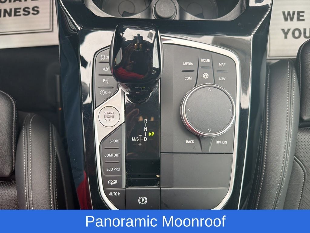 Equipped with Connected Package Pro, Parking Assistance Package (Active Park Distance Control, Parking Assistant Plus, Rear-View Camera, and Surround View w/3D View), Premium Package (Head-Up Display, Heated Front Seats, Heated Steering Wheel, Live Cockpit Pro w/Navigation, Lumbar Support, and Panoramic Moonroof), 8-Speed Automatic Sport, 12 Speakers, 3.385 Axle Ratio, 4-Wheel Disc Brakes, ABS brakes, Air Conditioning, Alloy wheels, Aluminum Interior Trim, AM/FM Radio, AM/FM radio: SiriusXM, Apple CarPlay & Android Auto Compatibility, Auto High-beam Headlights, Auto-dimming door mirrors, Auto-dimming Rear-View mirror, Automatic temperature control, BMW Assist eCall, BMW TeleServices, Brake assist, Bumpers: body-color, ConnectedDrive Services, Delay-off headlights, Driver door bin, Driver vanity mirror, Dual front impact airbags, Dual front side impact airbags, Electronic Stability Control, Emergency communication system: BMW Assist eCall, Enhanced USB & Bluetooth® w/Smartphone Integration, Exterior Parking Camera Rear, Four wheel independent suspension, Front anti-roll bar, Front Bucket Seats, Front Center Armrest, Front dual zone A/C, Front reading lights, Fully automatic headlights, Garage door transmitter, Genuine wood dashboard insert, Genuine wood door panel insert, Heated door mirrors, Hi-Fi Sound System, Illuminated entry, Knee airbag, Leather steering wheel, Low tire pressure warning, Memory seat, Navigation, Navigation System, Occupant sensing airbag, Outside temperature display, Overhead airbag, Panic alarm, Passenger door bin, Passenger vanity mirror, Perforated SensaTec Upholstery, Power door mirrors, Power driver seat, Power Front Seats, Power Liftgate, Power passenger seat, Power steering, Power windows, Radio data system, Rain sensing wipers, Rear air conditioning, Rear anti-roll bar, Rear reading lights, Rear seat center armrest, Rear window defroster, Rear window wiper, Remote Engine Start, Remote keyless entry, Security system, SiriusXM w/360L & 1 Yr Platinum Plan Subscription, Speed control, Speed-sensing steering, Speed-Sensitive Wipers, Split folding rear seat, Spoiler, Sport Seats, Sport steering wheel, Steering wheel mounted audio controls, Tachometer, Telescoping steering wheel, Tilt steering wheel, Traction control, Trip computer, Turn signal indicator mirrors, Variably intermittent wipers, Wheels: 19 x 7.5 Y-Spoke (Style 693), WiFi Hotspot, and Wireless Charging.
