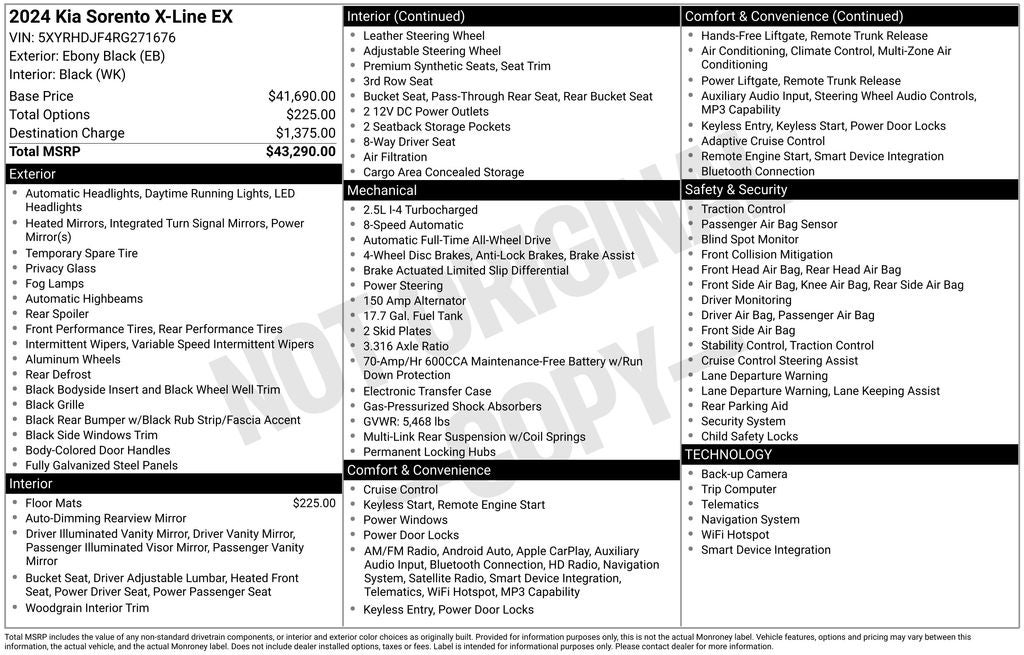 - Vehicle Name: Kia Sorento